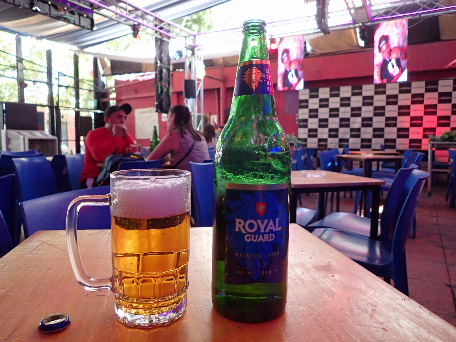味は普通のビールの味です。値段は日本円にして、缶ビールだと大体200~300円、バーで飲むと大体450~800円ほど。