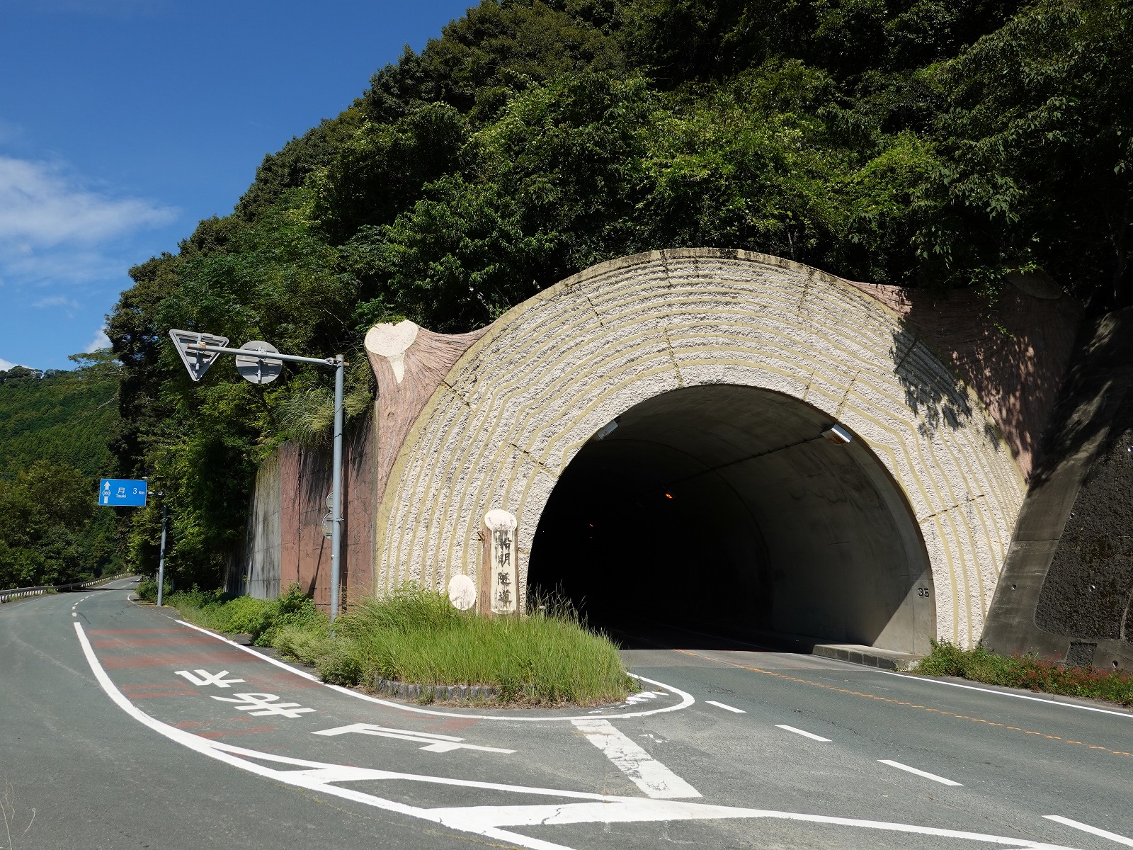 トンネルの手前にバス停があります。1日4本だけの運行です。