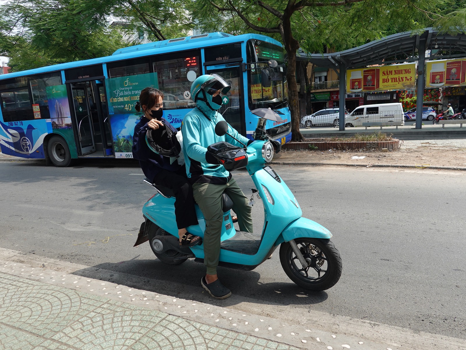 バイクタクシーはベトナムのいたるところで走っており、短距離間の移動の時は非常に便利ですが、その辺で走っているバイクタクシーを捕まえるのと、配車アプリから配車予約をして送迎してもらうのでは料金が全然違います。配車アプリを利用するほうがはるかに安いです。デメリットとしては、配車アプリを予約してから迎えに来てもらうまで早くても5分近くかかるため、急いでいるときは目の前を走っているバイクタクシーを呼び止めて乗車するほうがはるかに便利です。